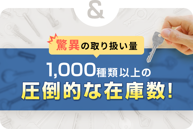 防犯性の高い最新の特殊鍵から電子錠まで、1,000種類以上ものラインナップからどんな鍵でも即日交換が可能です。