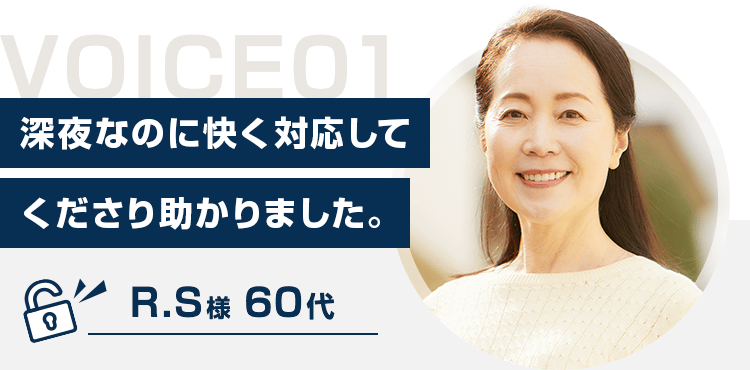 出張先から帰宅し、鍵を無くしたことに気づいて慌てました。でも夜遅くなのにすぐに作業員さんが来てくださり、すごい早さで開けてくださって助かりました。丁寧に対応してくださってありがとうございます。